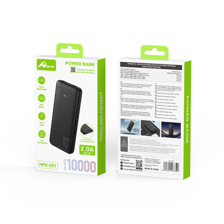 - Capacità: 10.000 mAh (3,7 V / 37 Wh)