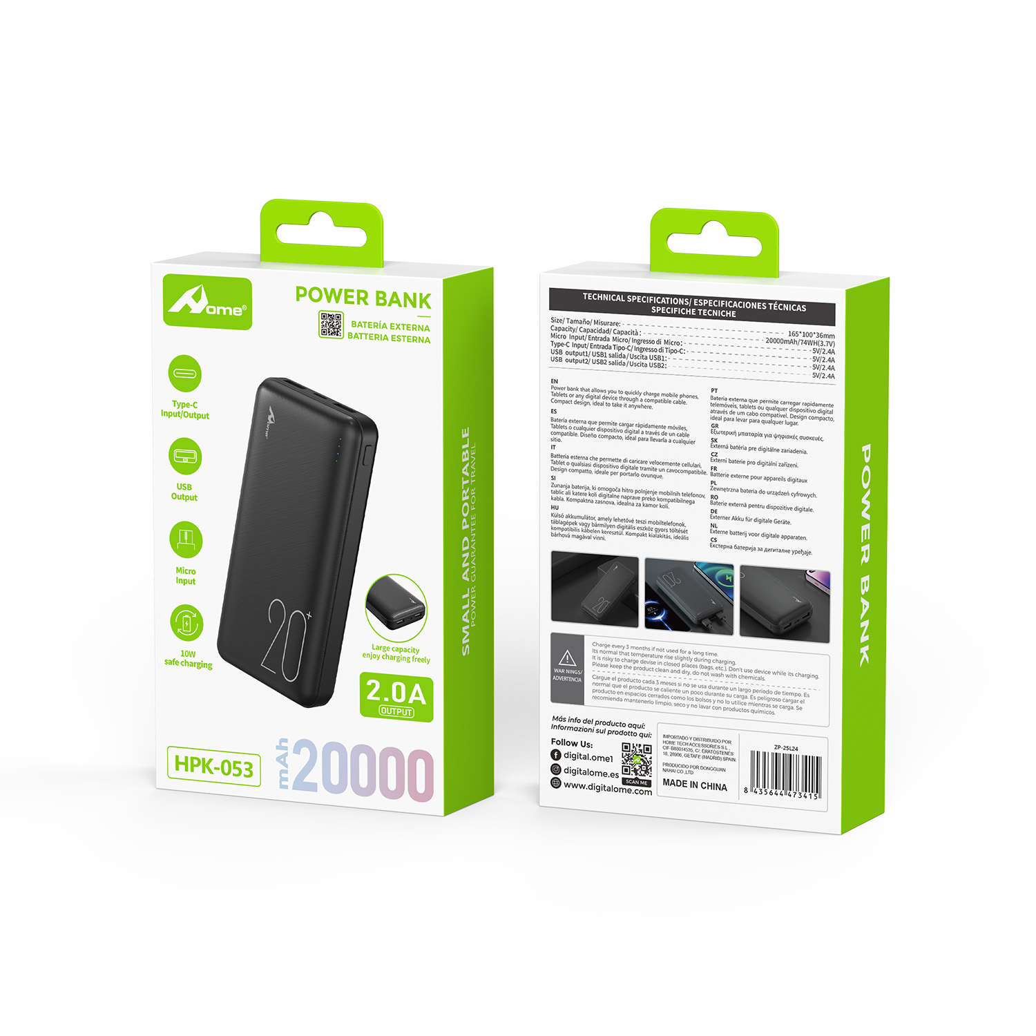 - Potencia: 20.000 mAh (3.7V / 74Wh)